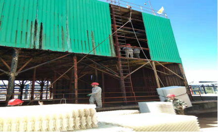 冷卻塔填料更換已然不是之前直接性的你接我送,而是利用滑輪與繩索進(jìn)行起吊,不僅大大的提高了工作效率,一眼望去也簡(jiǎn)單了許多,這是大家齊心協(xié)力,在實(shí)踐中摸索出來的智慧與力量。