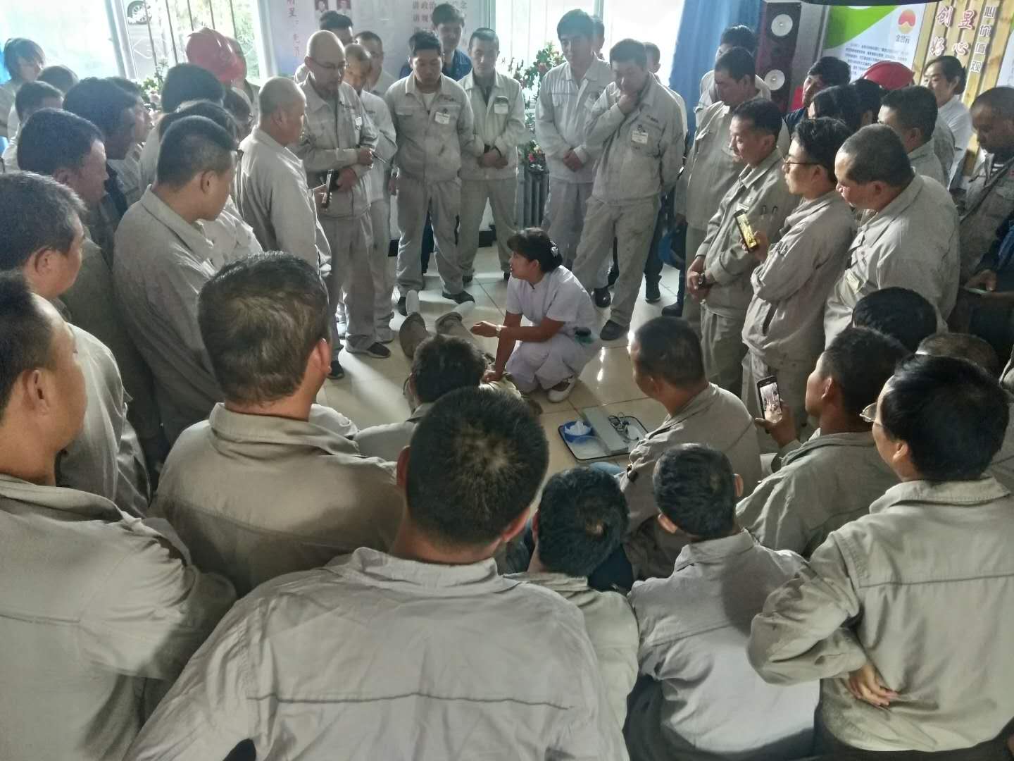 2019年9月3日下午16:00分資源再生公司邀請青銅峽市醫(yī)院急救科朱醫(yī)師、李護士長到公司現(xiàn)場模擬心肺復蘇急救演練操作培訓,各生產(chǎn)裝置班組長以上人員、科室各專業(yè)60余人參加了培訓。