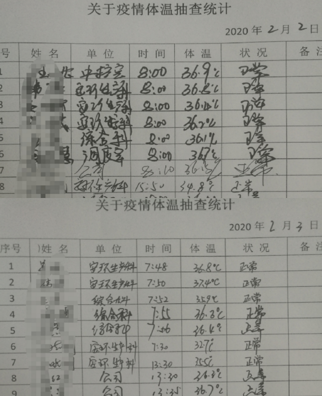 對已隔離人員密切關(guān)注,每天進(jìn)行詢問其狀態(tài)和體溫進(jìn)行登記。