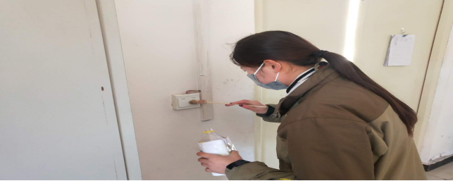 擦拭操作臺、門把手,及時進行衛(wèi)生消毒