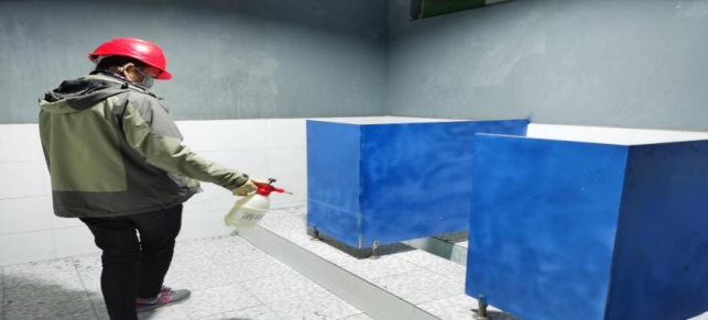 擦拭操作臺、門把手,進(jìn)行衛(wèi)生消毒,工作的有條不紊。