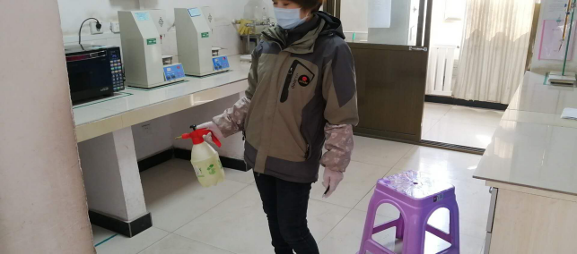 擦拭操作臺、門把手,進(jìn)行衛(wèi)生消毒,工作的有條不紊。