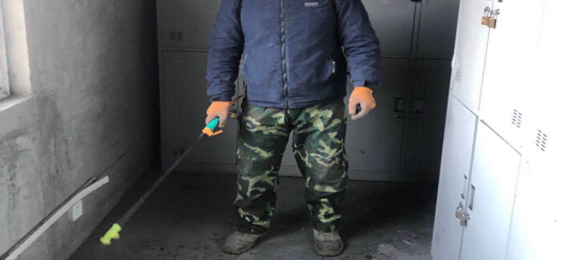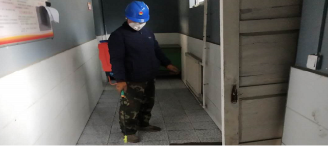 對(duì)廠區(qū)衛(wèi)生間消毒。