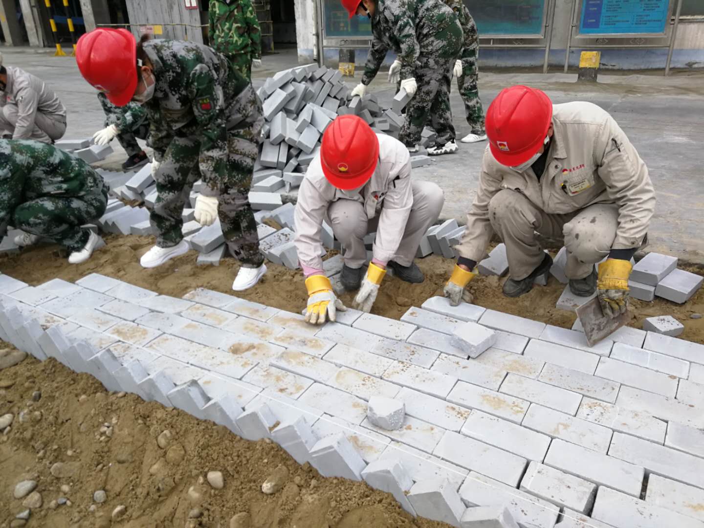 3月23日早上8:30分,資源再生公司組織所有日勤人員到成品裝置東側(cè)綠化帶內(nèi)勞動。說是勞動,其實就是用青磚將綠化帶旁邊多余的土地鋪成平整的小路。雖然大家不是專業(yè)的泥瓦匠,也沒有專業(yè)的工具,但大家想方設(shè)法將青磚鋪的平整而又美麗。說說笑笑中手下的工作一點兒也沒有落下。時間在忙碌中悄悄溜走,大約一個小時,原來的沙土地變成了平整的磚地,遠(yuǎn)遠(yuǎn)看去,青磚鋪成的小路干凈而又整齊。