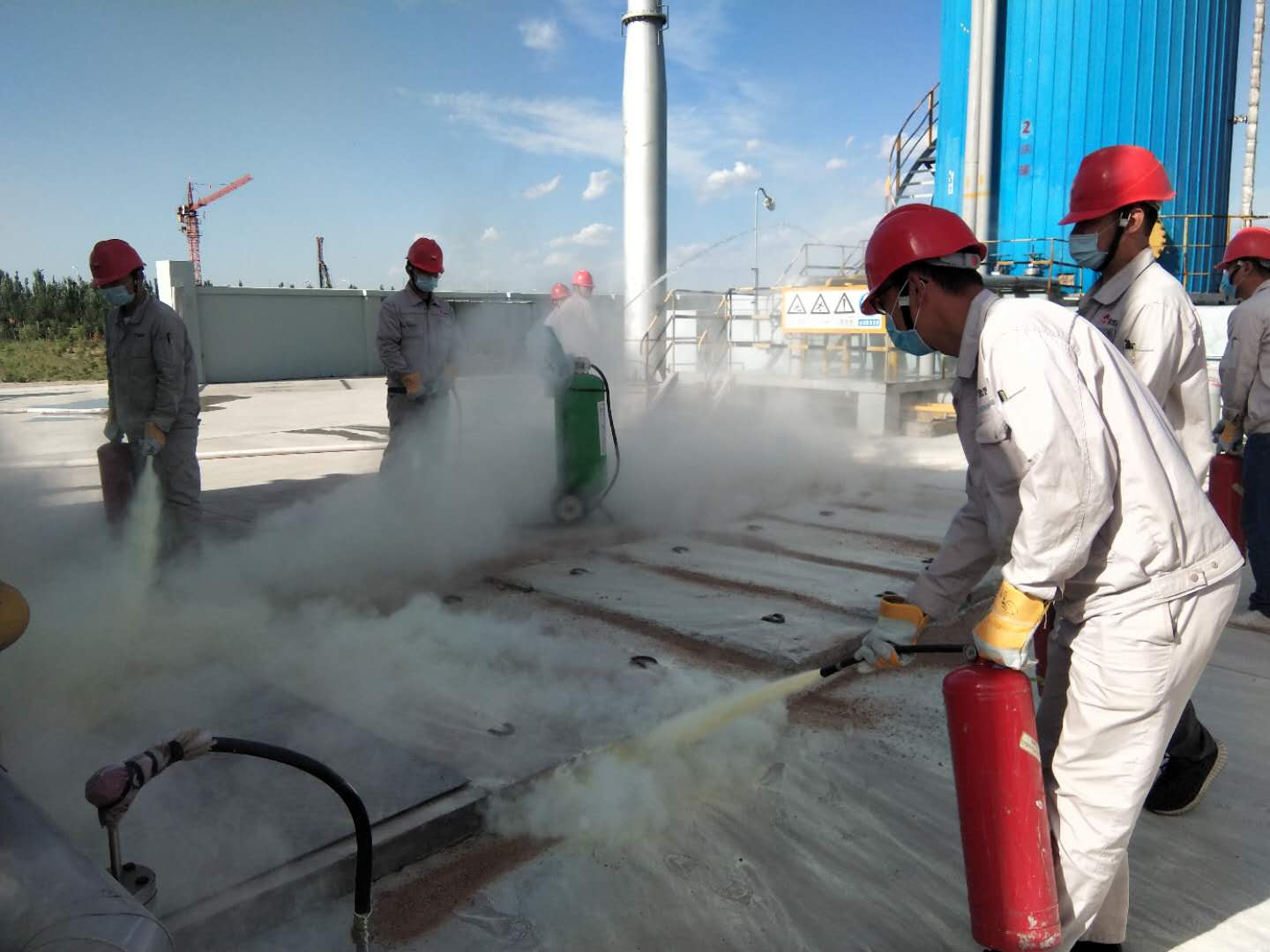 為提高公司事故防范和應(yīng)急保障能力,及時有效地處理火災(zāi)事故,避免或降低可能發(fā)生的事故對公司造成經(jīng)濟損失和不良影響,根據(jù)公司“安全生產(chǎn)月”活動安排,6月23下午16時50分,興昊永勝鹽業(yè)公司緊緊圍繞“消除事故隱患,筑牢安全防線”的活動主題,組織開展了一次燃油庫區(qū)回油管路漏油導(dǎo)流溝著火事故應(yīng)急演練。本次事故演練由副經(jīng)理張建東主持,各科室、裝置50余人參加,同時還邀請了片區(qū)主管領(lǐng)導(dǎo)和專業(yè)工程師參加活動。