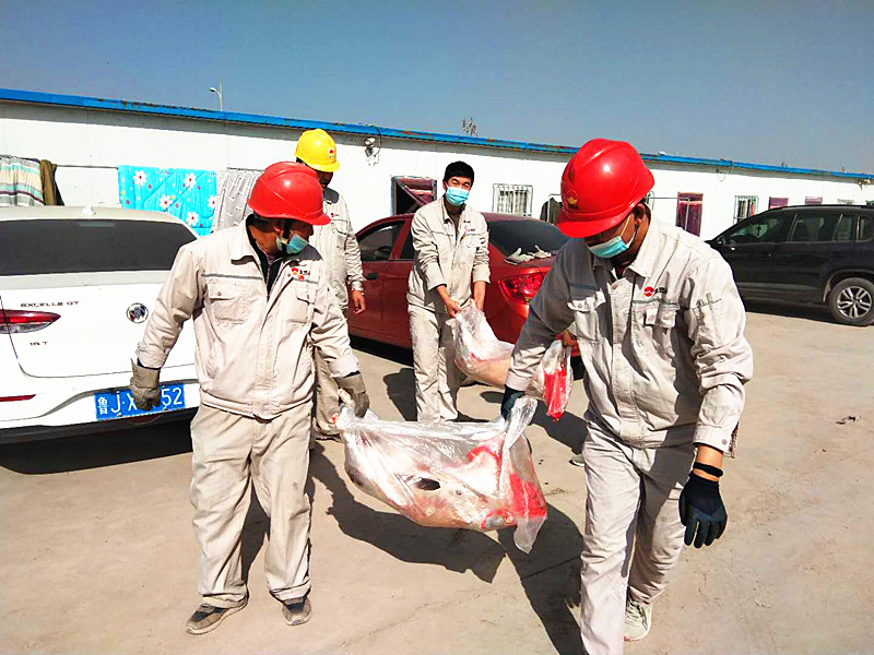 進(jìn)入深秋,天氣漸冷,興昊永勝鹽業(yè)公司3#鍋爐建設(shè)也進(jìn)入了關(guān)鍵的收尾階段,為了向奮戰(zhàn)在一線的建設(shè)工作者們表示感謝,10月23日,鹽業(yè)公司副經(jīng)理張建東一行,到山東洪典項(xiàng)目建設(shè)部,為他們帶去羊肉等慰問品,讓建設(shè)工人在寒秋季節(jié)真切感受到我們誠摯的問候。