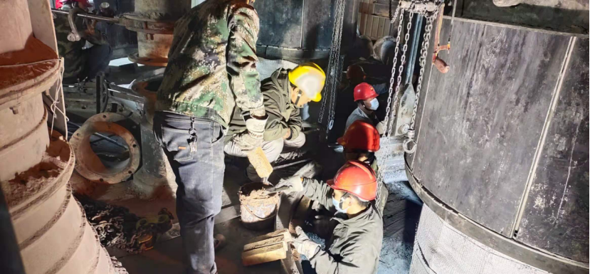 此次大檢修的項(xiàng)目包括:更換部分循環(huán)水管,檢查電極本體,打磨補(bǔ)焊水冷套,消除爐蓋漏點(diǎn),更換過(guò)濾倉(cāng)粗煤氣彎管等一系列大型檢修項(xiàng)目,為之后的設(shè)備保養(yǎng)工作起到了良好的鋪墊作用。此次檢修工作順利進(jìn)行,離不開(kāi)本裝置檢修工人和其他裝置維修工的團(tuán)結(jié)互助,無(wú)私奉獻(xiàn),他們?nèi)蝿谌卧沟墓ぷ鲬B(tài)度值得我們敬佩。他們的英姿如同