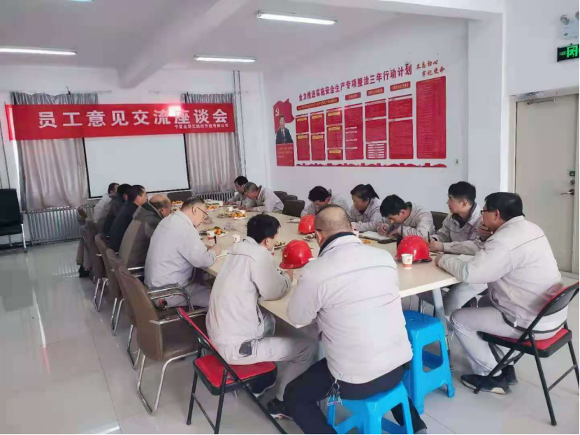 為進(jìn)一步增進(jìn)員工與管理人員之間的有效溝通,了解員工對(duì)公司管理的意見(jiàn)建議,以及解決員工在工作和生活中遇到的實(shí)際問(wèn)題,調(diào)動(dòng)公司全體員工的主動(dòng)性、創(chuàng)造性,營(yíng)造良好的企業(yè)文化氛圍,按照集團(tuán)公司黨委工作安排, 2020年12月2日下午14:00-15:30和16:00-17:30,炔烴節(jié)能有限公司干部職工意見(jiàn)交流座談會(huì)在集控樓一層會(huì)議室正式召開(kāi)。