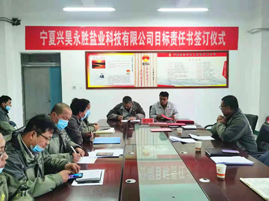 2021 年 1 月 7 日 15:30,寧夏興昊永勝鹽業(yè)科技有限公司召開了2021年首次安委會擴(kuò)大會議暨安全生產(chǎn)目標(biāo)責(zé)任書簽訂儀式。會議由公司總經(jīng)理主持,公司安委會全體成員及技術(shù)員以上人員參加了本次會議。