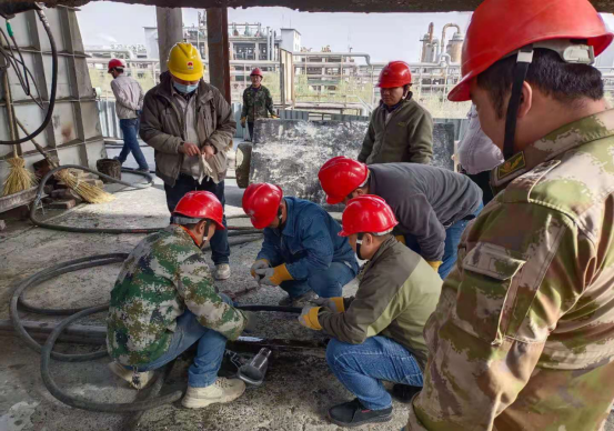 期間,此次檢修的片區(qū)業(yè)務(wù)指導(dǎo)領(lǐng)導(dǎo)有總調(diào)度長(zhǎng)徐建華、設(shè)備工程師劉迪文深入現(xiàn)場(chǎng)進(jìn)行指導(dǎo)工作。公司參檢人員為了搶時(shí)間,搶進(jìn)度,副總經(jīng)理梁軍組織人員一方面實(shí)行車輪戰(zhàn),以最快的速度清理完窯內(nèi)物料,另一方面組織裝置專業(yè)技術(shù)人員鉆入熾熱的窯體內(nèi),進(jìn)行窯磚回填。經(jīng)過全體人員的連續(xù)不間斷的奮戰(zhàn),比計(jì)劃提前了3個(gè)小時(shí)。為確保搶修安全和質(zhì)量,公司總經(jīng)理、副總經(jīng)理、安環(huán)生產(chǎn)科科長(zhǎng)及成品裝置長(zhǎng)始終盯靠在現(xiàn)場(chǎng),對(duì)搶修工作進(jìn)行指導(dǎo)和協(xié)調(diào)。