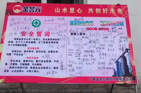 為深入貫徹落實(shí)黨中央、國務(wù)院關(guān)于安全生產(chǎn)的重大決策部署,牢固樹立安全發(fā)展理念,以防范化解重大風(fēng)險、及時消除安全隱患、堅(jiān)決遏制生產(chǎn)安全事故為目標(biāo),緊緊圍繞“落實(shí)安全責(zé)任,推動安全發(fā)展”這一活動主題,落實(shí)各級人員安全職責(zé)、普及安全知識,強(qiáng)化安全生產(chǎn)的責(zé)任意識和反違章管理,樹立全員參與意識,把保障安全放到至高無上的位置,通過集中開展一系列安全生產(chǎn)宣傳教育活動,將安全目標(biāo)轉(zhuǎn)化為落實(shí)安全生產(chǎn)責(zé)任的自覺行動,確保公司安全生產(chǎn)形勢持續(xù)穩(wěn)定向好。2021年6月3日寧夏金昱元炔烴節(jié)能有限組織各裝置、外協(xié)單位開展以“落實(shí)安全責(zé)任、推動安全發(fā)展”為主題的安全月宣誓簽名活動。