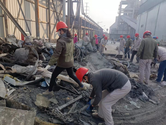 勞動(dòng)中,全體管理人員充分展現(xiàn)了不怕臟、不怕苦、不怕累,勇挑重?fù)?dān)的良好精神風(fēng)貌。大家熱情高漲,樂(lè)在其中。他們有的幾人一組將管件、無(wú)法修復(fù)的配件、鋼材邊角料從積料區(qū)域的備件先抬出來(lái),將可利用的鋼板、鋼絲繩等備件挑選出來(lái),用鏟車將積壓物料的廢鐵器翻出來(lái);有的忙著把一些可回收的風(fēng)機(jī)用氣割剝,拆下修好后作為備件以備不時(shí)之需……