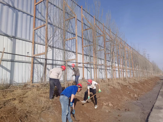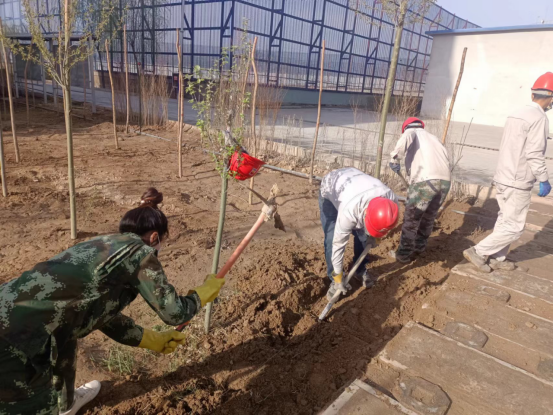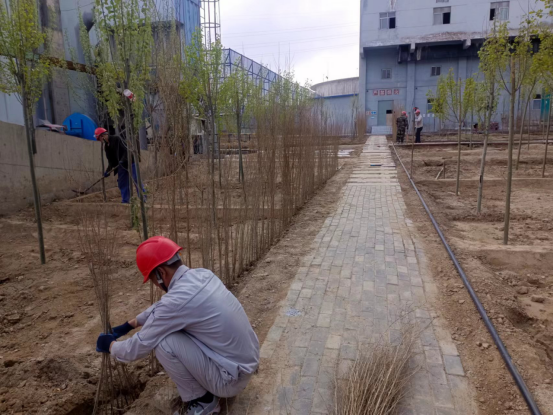 連日來,經(jīng)過一番番熱火朝天的勞動(dòng)后,近1000棵楊柳樹、絲棉樹,一棵棵新栽、補(bǔ)栽的樹苗亭亭玉立,在明媚的春光中展現(xiàn)勃勃生機(jī),為新春的廠區(qū)增添絲絲活力。