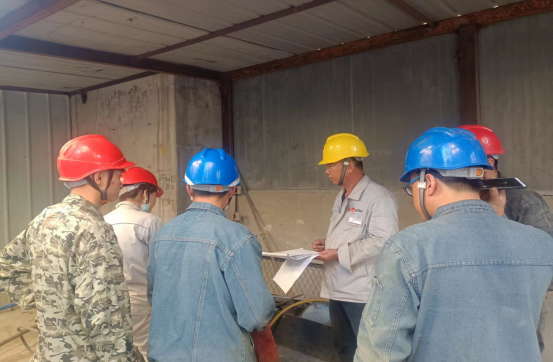 更換生料1909提升機鏈條和料斗現(xiàn)場:他們無懼“烤”驗 ,“汗”衛(wèi)設(shè)備有效運行。檢修中,他們手持焊槍,用一片赤忱,“汗”衛(wèi)設(shè)備長周期穩(wěn)定運行,在太陽曝曬下,設(shè)備溫度已達40℃左右,有限高溫作業(yè),一會兒焊接,一會兒切割,一會兒又是安裝……他們堅守一道道安全之門,即使皮膚曬得黝黑,汗水濕透衣衫,依然為的是安全生產(chǎn)穩(wěn)定保駕護航!