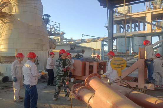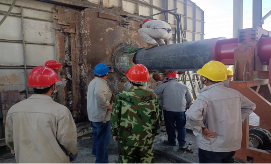 最繁忙、最艱苦的時段,從上午6:00分至下午17:20分,他們頂酷暑堅守在挖補窯磚、更換噴煤管的一線現(xiàn)場。烈日下,有的實施清理挖補窯磚、有的丈量計算、有的指揮進行吊裝、有的進行切割、焊接……