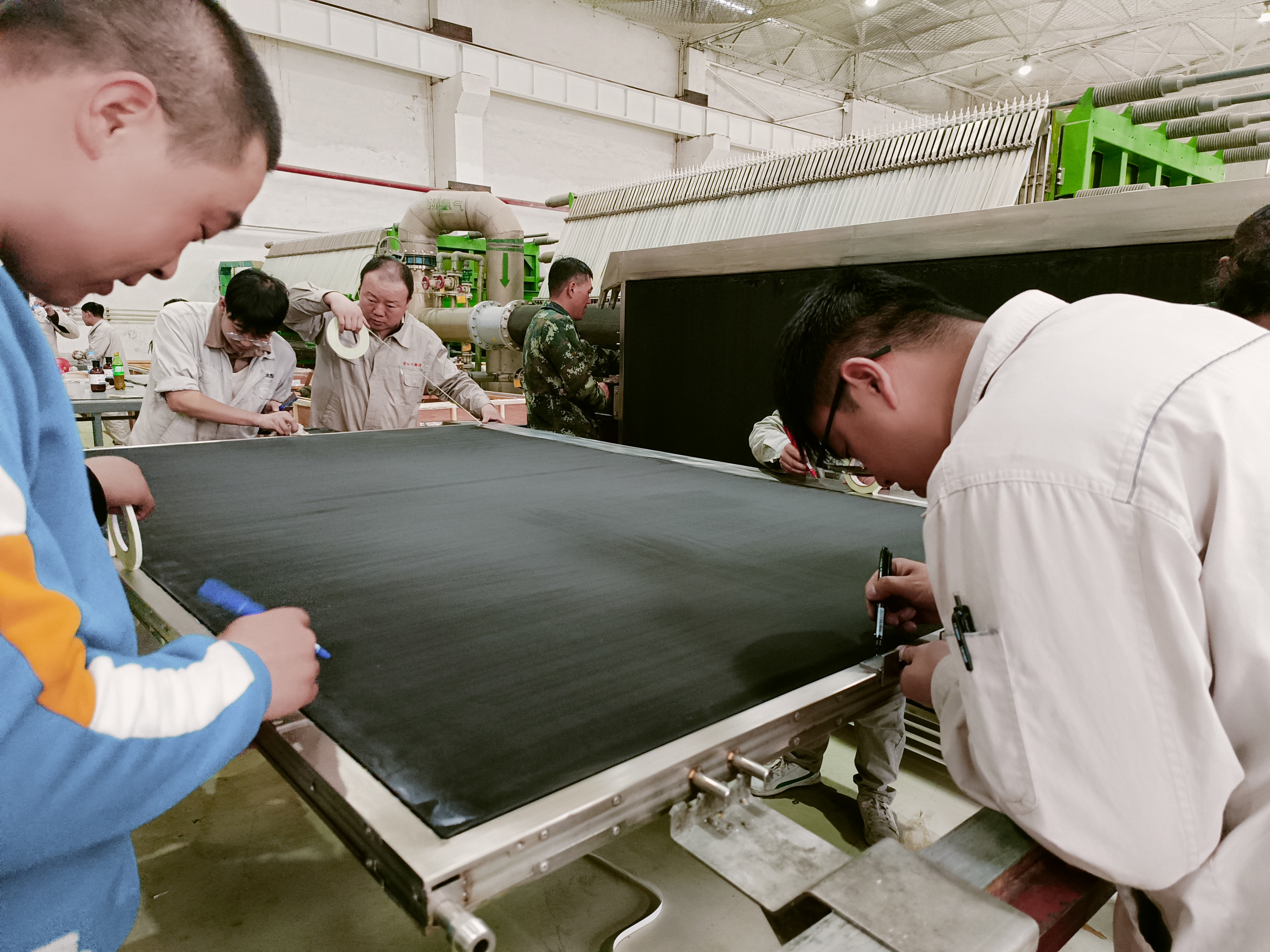 檢修電解槽是一項精密度極高的工作,每一片單元槽都需要經(jīng)過清理密封面、粘墊子、摸極網(wǎng)和裝膜的過程,每個環(huán)節(jié)都需要作業(yè)人員注意力高度集中,來確保檢修質(zhì)量。在清理密封面環(huán)節(jié)中,不論是最開始用刀片清理還是后來使用壓縮空氣吹,都需要作業(yè)人員精力高度集中,必須確保密封面清理干凈。清理干凈的密封面需要粘墊子,粘墊子更是一個“針線活兒”,要控制好墊子內(nèi)邊緣與電解槽內(nèi)邊緣的距離,陽極4毫米,陰極2毫米,經(jīng)過一段時間的操作,從剛開始的兩人合力粘一個墊子到現(xiàn)在人人都能粘,粘墊子的速度從10分鐘一片單元槽縮短至6分鐘一片單元槽,不僅速度加快了,而且質(zhì)量也更高了。