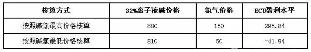 按照堿氯最低價(jià)格核算,無(wú)自備電廠的氯堿企業(yè)ECU平均虧損41.94元/噸,而按照最高價(jià)格核算,無(wú)自備電廠的氯堿企業(yè)盈利295.84元/噸。