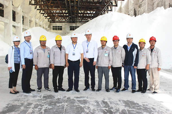 白鴻一行先后到興昊永勝鹽業(yè)公司鹽庫(kù)、鹽硝裝置、熱力裝置、企業(yè)文化展廳等地進(jìn)行實(shí)地調(diào)研,并在鹽庫(kù)合影留念。