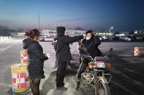 2月13日,氣溫驟降,在片區(qū)北大門新增檢測點,由于值班室是移動房,沒有暖氣,劉聰俊和侯進(jìn)在晚上頂著寒冷值班。盡管天氣嚴(yán)寒,但他們依然堅守崗位,一絲不茍地對通行人員進(jìn)行體溫測量和信息登記,嚴(yán)把疫情防控關(guān)。和他們一樣,所有檢測點的保衛(wèi)科人員都默默無聞地與疫情防控和嚴(yán)寒做著斗爭。