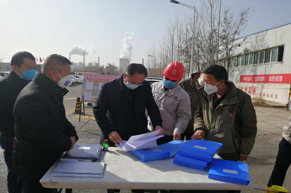 金永靈市長(zhǎng)按常規(guī)程序進(jìn)行測(cè)量體溫和登記信息,并翻閱出入大門人員信息登記臺(tái)賬。他詳細(xì)了解了集團(tuán)公司疫情防控工作,總裁葉森和黨委副書記兼工會(huì)主席王立軍逐一回答。