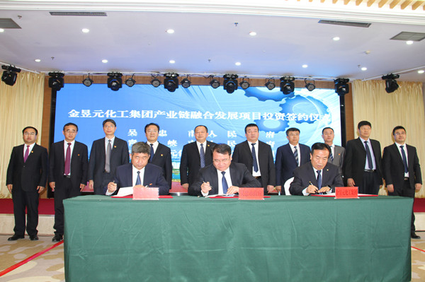 金昱元化工集團(tuán)總裁陳文泓代表公司和吳忠市、青銅峽市政府簽訂產(chǎn)業(yè)鏈融合發(fā)展項(xiàng)目協(xié)議。