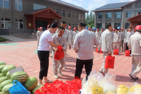 青銅峽市總工會和固原經(jīng)濟(jì)開發(fā)區(qū)總工會為集團(tuán)公司送來西瓜、礦泉水、金絲菊、冰糖等防暑物品,表達(dá)對企業(yè)一線員工關(guān)心和厚愛。