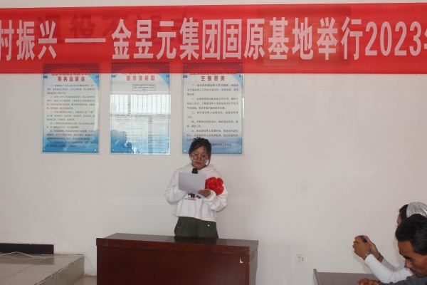 彭堡鎮(zhèn)黨委書(shū)記范亞寧、人大主席呂維兵,原州區(qū)綜合執(zhí)法局駐村工作組負(fù)責(zé)人王鑫,楊忠堡村書(shū)記童正武;金昱元化工集團(tuán)黨委副書(shū)記、工會(huì)主席尚興,集團(tuán)公司副總裁、固原基地黨委書(shū)記王立軍,固原基地工會(huì)主席劉志江、女工主任張靜出席儀式。