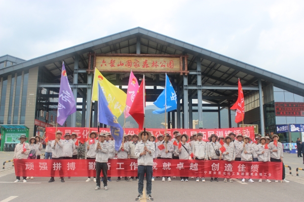 早晨8:30,參加拓展訓(xùn)練人員從公司東門口集合出發(fā),乘坐旅游巴士一路歡歌,共赴六盤山森林公園,沐浴綠野清風(fēng),與六盤山水來一場久違的約會(huì)。