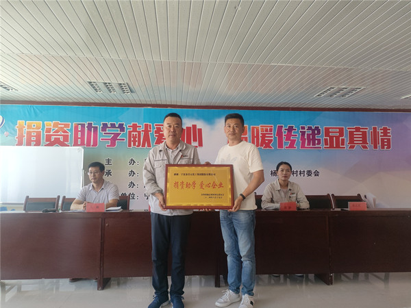 最后,彭堡鎮(zhèn)楊忠堡村黨支部書記童正武為寧夏金昱元化工集團(tuán)股份有限公司頒授了“捐資助學(xué) 愛心企業(yè)”榮譽牌。