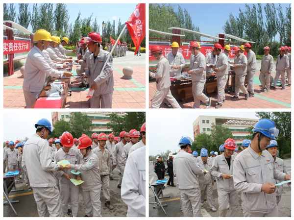 參加啟動(dòng)儀式的員工莊嚴(yán)宣誓:為了公司穩(wěn)步發(fā)展,為了個(gè)人安全健康,為了家庭幸福美滿,忠誠企業(yè),恪盡職守,堅(jiān)守紅線,珍愛生命,創(chuàng)建平安企業(yè);堅(jiān)決做到:牢記安全,遵守紀(jì)律,履行安全職責(zé),不違章、不冒險(xiǎn)、不留隱患、不出事故,以實(shí)際行動(dòng)爭做安全合格員工,確保安全,讓企業(yè)放心,讓家人放心。